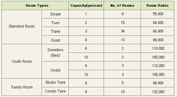 -  Rates from kw40,000 per person per night(discount pending)