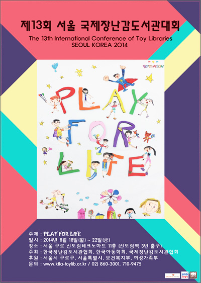 KTLA´Â ¼­¿ï½Ã ±¸·Î±¸Ã»°ú ÇÔ²² Áö³­ 2011³â 10¿ù 11ÀϺÎÅÍ 15ÀϱîÁö ºê¶óÁú »óÆÄ¿ï·Î¿¡¼­ ¿­¸° Á¦12Â÷ ±¹Á¦Àå³­°¨µµ¼­°ü´ëȸ¿¡ Âü¼®ÇÏ¿© Â÷±â ±¹Á¦Àå³­°¨´ëȸ °³ÃÖ±¹ ½ÅûÀ» ÇÏ¿© 14ÀÏ ÃÑȸ¿¡¼­ ÅõÇ¥±ÇÀ» °¡Áø Âü¼® ȸ¿ø Àü¿øÀÇ Âù¼ºÀ¸·Î 2014³â Á¦13Â÷ ±¹Á¦´ëȸ °³ÃÖ±¹À¸·Î ¼±Á¤µÇ¾ú´Ù.